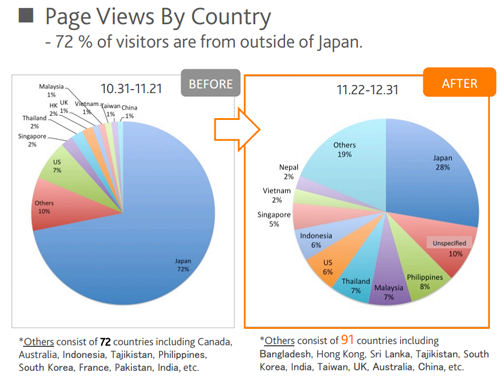 「以前は、ウェブサイト訪問者の72%が日本人でした。Facebook施策を行ったことで、サイト訪問者の約7割が海外からという状態に大きく変わりました。大きくFacebook広告に予算を投下したのは年末が最後でしたが、継続的に海外からのサイト流入は続き、現在でも約6割が海外からのビジターです。広告をきっかけにたくさんの海外の方にリーチすることができ、その後も1度リーチした人たちが継続的にFacebookページの投稿を見てくれて、ウェブサイトへの訪問につながっているのでしょう」(桑田氏)