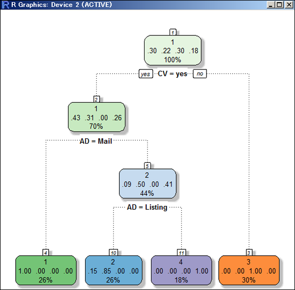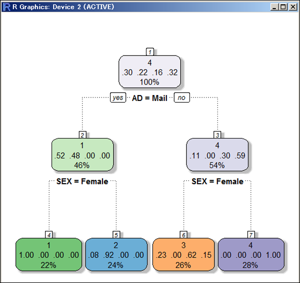 ADがMailでなかった場合、Listingでなければパープルのグループ4が、Listingであればブルーのグループ2となっています。