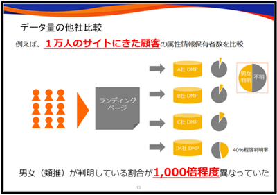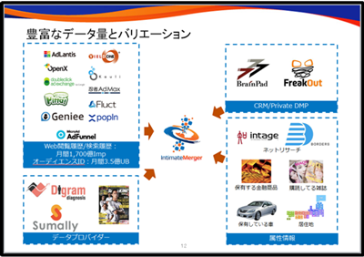 Intimate Merger の強みは、数多くの外部サービスとの連携によって蓄積された月間3.5億を超えるオーディエンスの属性情報(類推データ)だ。データのマッチング率も他のDMPと比べて圧倒的な高さを誇る。