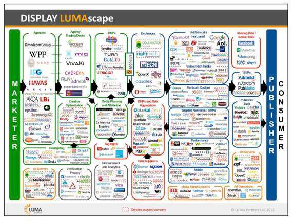 LUMA scapeのディスプレイカオスマップをみても、この業界の複雑になっている状況が一目でわかるが、実際には一つの企業が一つの役割だけを担っているわけではなく、現実はこの図以上に複雑だ。このような状況下では複雑性を増しているからこそ、本質を捉えられるマーケターが求められている。「今ある選択肢」の中で考えようとしても、そのすべてを把握することが難しいのであれば、すでにあるかないかに関係なく、理想の戦略を考え、もし、ないのであれば新しい形を創造していくことも、マーケターに求められているのではないだろうか。