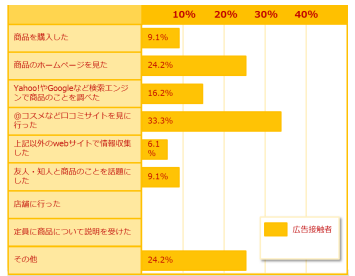 ※本調査は、PC接触者の態度変容について調べたもの。「Glitty」読者の8割はスマホユーザーが占める。「女性」x「PC閲覧者」というセグメントをかえたこともあり、母数が少ないことが本調査上の課題である。
