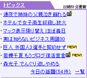 また、コアユーザーの方は気づいているかもしれないですが、トップのトピックスはグラデーションをかけるように、上からネタを並べています。社会・経済といった硬派なネタから、芸能・スポーツといった柔らかいネタといったグラデーションです。