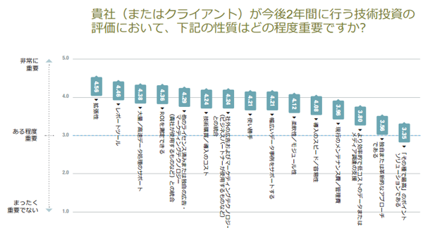 将来的なテクノロジーへの投資を推進する際、マーケターが期待する最も重要な考慮事項は「拡張性」に。