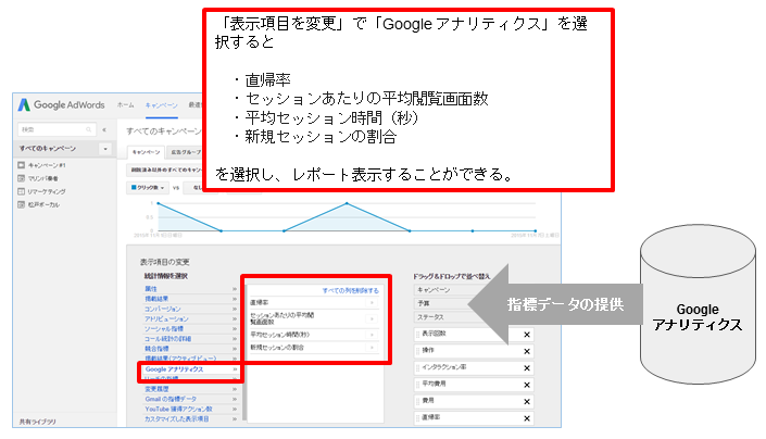 →AdWordsのキャンペーンレポート画面への指標追加表示