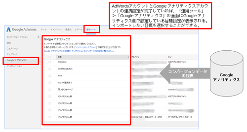 ・AdWordsアカウント側のキャンペーン配信、計測データ