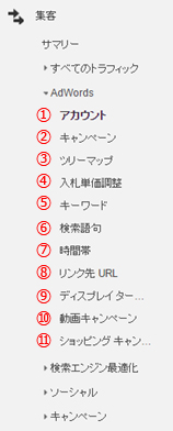 ②キャンペーン AdWordsキャンペーンごとの計測レポート