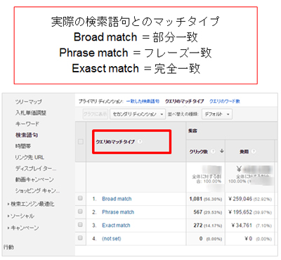 検索語句:AdWordsキーワードと一致した検索キーワードごとの計測レポート