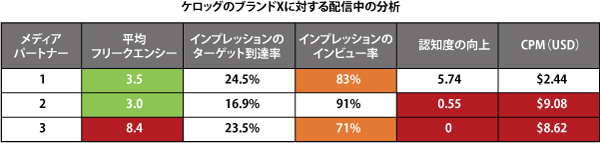 小林:分析項目にインプレッションのターゲット到達率(ターゲットリーチ)があるとは……。日本と全然違いますね。表内のデータから読み解くと、2はそれほどいい結果ではありません。広告主がターゲットとするユーザーをあまり含有しないメディアということですね。