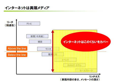 別にインターネットがすごくないと言いたいわけではないのですが、広告メディアとしてインターネットを捉えた場合、良くも悪くもこんなものです。もう少し実例を見ていきましょう。