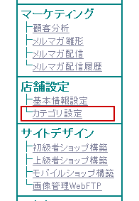 カテゴリを設定する場合には、RMDSトップページから管理メニューにログイン後、管理メニュートップページの管理メニュー一覧に記載されている「店舗設定」項目下にある「カテゴリ設定」をクリックします。