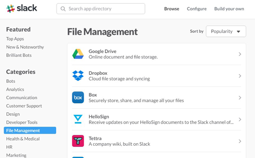 また、Slackは多くのサービスとAPIを通じて連携が可能です。たとえばDropboxなら、URLをペーストするだけでファイルをシェアできたり、逆にSlackにアップしたファイルがそのままDropboxに格納されたり、さらにはファイルもSlack内からの検索対象になる、などの便利な使い方ができるのです。