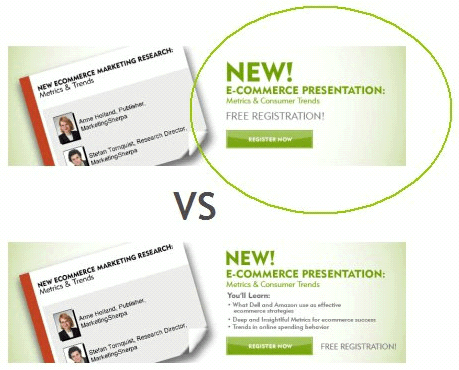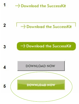 ランディングページへのリンクは、テキストのパターンとボタンデザインのパターンで5種類をテストしたところ、「DOWNLOAD NOW(今すぐダウンロード)」の文言でボタンデザインのものが最も高いクリック率を出しました。ほんの小さな変更と思われがちですが、「→Download the SuccessKit(サクセスキットをダウンロード)」のテキストリンクは1.46%のクリック率だったのに対し、「DOWNLOAD NOW(今すぐダウンロード)」のボタンデザインでは4.17%のクリック率と大きな違いが生じました。バナーテスト:送信ボタン/リンクテスト