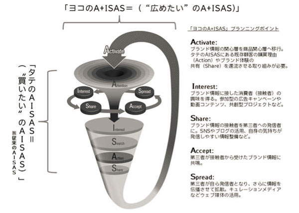 有園:今回のプロジェクトにおいては、InstagramなどのSNSでの写真の投稿を「Activate(起動・活性化)」として、SNS連動番組およびCMを「Attention(注意喚起)」と位置付ける。そしてSNSの投稿がヨコの「A+ISAS」の情報の拡散を引き起こすように設計しています。