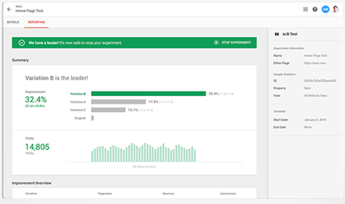 従来の「ウェブテスト」機能の進化版と考えられるが、サイトコンテンツのA/Bテストに加え、Google アナリティクス 360で計測した行動データセグメントと連携したコンテンツのパーソナライズ配信を可能にする機能を搭載。テスト用のページはUI上の操作で簡単にレイアウトや簡単なデザインの変更などが行なえるようになっており、マーケター自身が自らの仮説に基づいたテストをスピーディに実施できるようになると思われる。