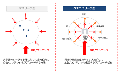 そこで今回「クチコミリーチを狙う」ということを意識しました。クチコミリーチというのは、直接ターゲットに動画広告を配信するのはもちろん、シェアしてくれそうな人に広告配信し、その人経由でターゲットに届けるということです。