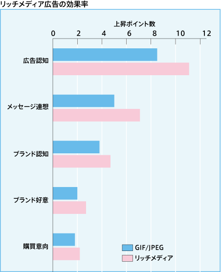 リッチメディア広告のインプレッション効果は、非リッチメディア広告のそれよりも大きい。