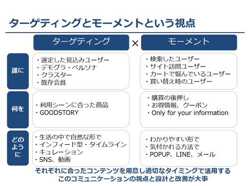 また、デジタルで取得できるデータの種類や量が増えている今、注目するのは「ターゲットとモーメント」と伴氏は提案する。
