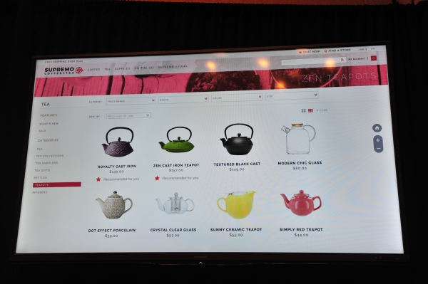 ここで彼女は、ティーポットのカテゴリーを選択し、和風のティーポットをカートに入れます。一見、普通の購入経路のように見えますが、AIA for CXでは、SNSやブログなどのデータから最新の評価や流行を、サードパーティデータとして蓄積し、それを分析しています。カテゴリーをクリックした際に、こうしたデータと彼女の嗜好をかけ合わせ、サーチリザルトを表示させるのです。