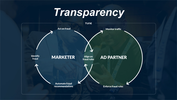 こうした深刻な背景をふまえ、TUNEはアドフラウド対策の「TUNE Fraud Prevention」を発表した。この取組の斬新なところは、マーケターと広告パートナーがデータを共有できるので、両者が協働してフラウドを行っているパブリッシャーを特定して締め出せることにある。なお、このソリューションは「TUNE Marketing Console」の一機能として提供される。