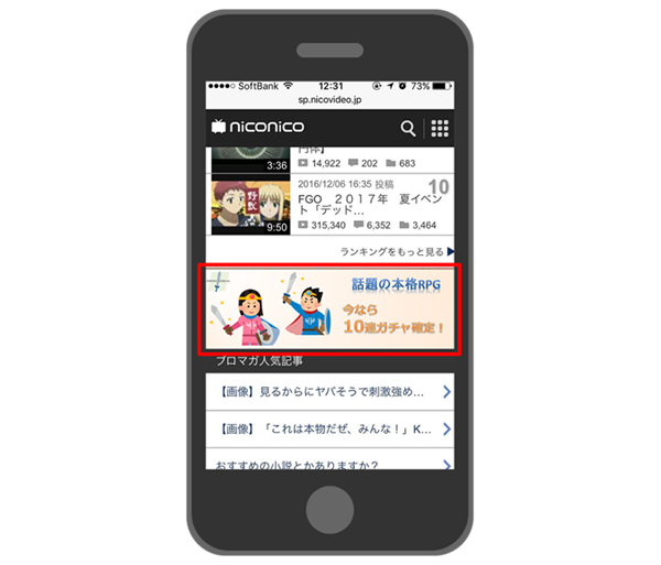 表示形式としてはインタースティシャル形式もしくは、ページをフリックでめくるようなサービス(マンガアプリなど)のページの合間と合間に挟み込まれているような形式が多いです。サイズ自体は大きいですがクリック領域が制限されていたり、出る場所がメディアによって固定されているため誤クリックは比較的少ないサイズだと言えるでしょう。