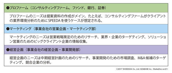 SPEEDAのABMで実際に使ったセグメントは、「プロファーム」「マーケティング」「経営企画」の3つです(図表2)。