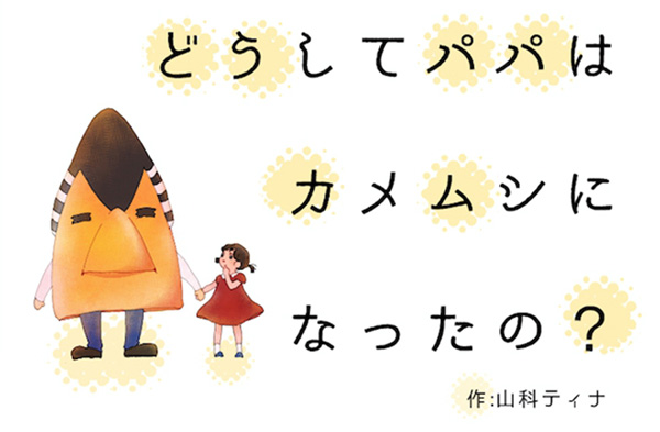 『どうしてパパはカメムシになったの?』は、タイトル自体が「パパ≠カメムシ」という形で、ストレートに謎かけしています。そこで興味を持たせ、経緯を描く物語に引き込みます。内容は、交通事故で死んだ父親がカメムシとなって生まれ変わり、父親を失って貧乏になっていく家族を哀しく見守る話です。