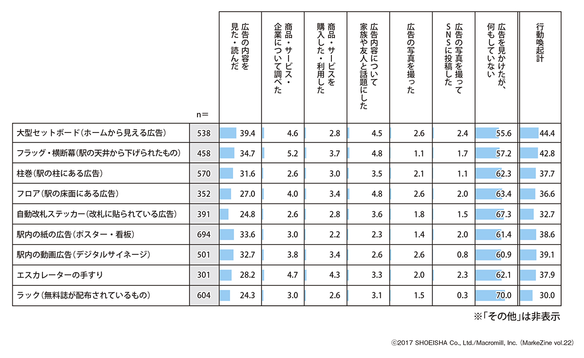 「駅にあるポスター・看板」が意識的に見られていない状況は、実際の行動からも確認ができる(図表4)。