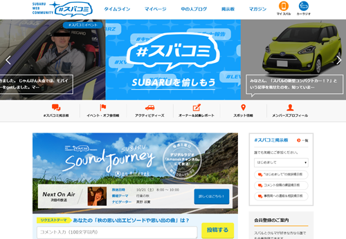 Webサイト「アクティブライフスクエア」は“スバルと一緒にでかけよう。”をテーマに、参加型のイベントを提供している。