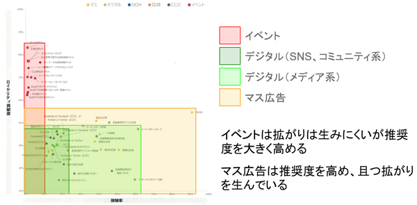 イベントについては、参加人数が限られてくるため爆発的な広がりは生まれない反面、ブランド体験の濃度は高く、推奨度や理解度も群を抜いているという。