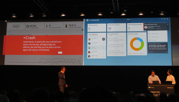 そしてユーザーの元に電話が。右はサービス担当のSAP Hybris Service Cloud画面。