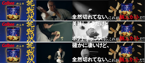 ここには、どんなに道を極めた挑戦者たちも成し遂げられないけれど、じゃがいもを「極み」カットできるのはカルビーさんだけであることをメッセージとして伝える狙いがあります。同じメッセージをシリーズ動画として複数の切り口で訴求することによって、認知向上を狙いました。