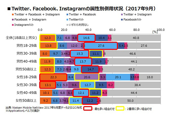 - Twitter、Facebook、Instagramのいずれも使っている人=3アプリ併用