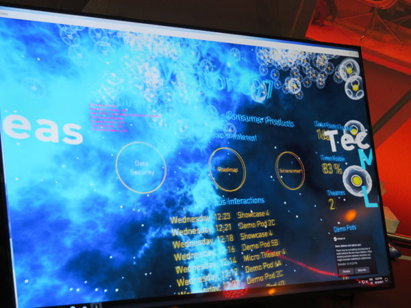自分のボールは色が異なり、それを手に取ると自分のデータが表示された。すべてリアルタイムの情報だ。訪問したシアターで何の説明が行われていたのかの情報と結びつけることで、訪問者が関心を持っているトピックを探ることができる。
