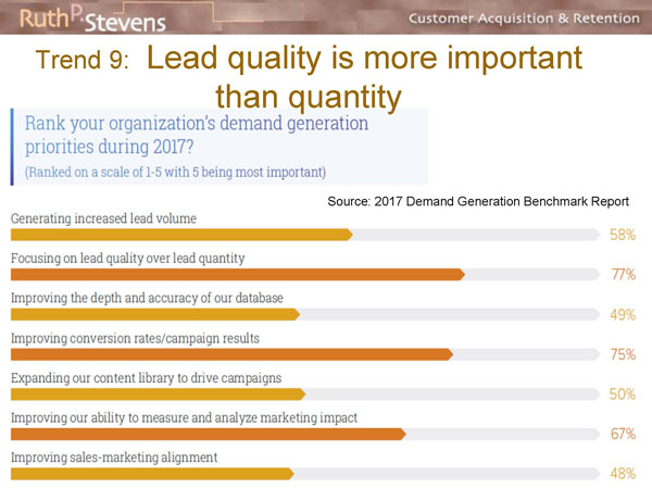 最近では量より質の傾向が強いです。BtoBマーケティングの目的は営業を生産的にすることです。だからこそ、質のよいリードを渡すことが重要になってきます。