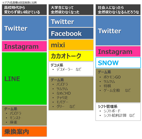 高校・大学・社会人と変わらず使ってるアプリ、使わなくなるアプリ
