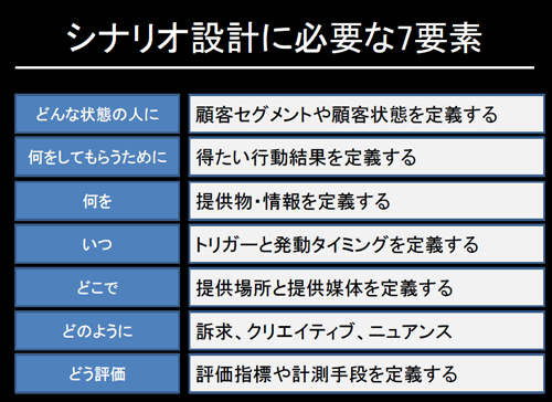 シナリオ設計の軸となる7つの要素と4つのポイント