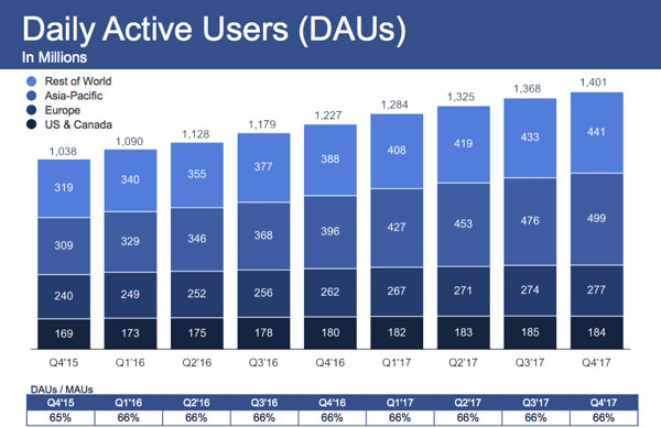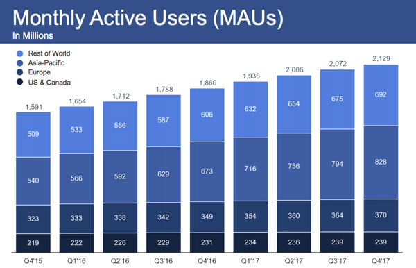 特筆すべきは北米地域のDAUで、全地域初の前期比マイナス成長となっています。減少数としては70万人となり、要因は「バイラルビデオの表示を減らしたことにある」とCEOのマーク・ザッカーバーグ氏は語っています。