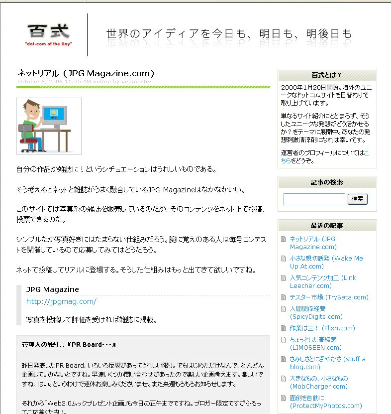 そうですね。例えば最近のWebページとかを見ても、いかに多くクリックさせるか? みたいなそういうノリになってるじゃないですか。ちゃんとしたメディアであれば、ちゃんとした広告が載ってあたりまえだし、なんか、みんな適当にやっている感じはしますね。Googleとかも、yahoo!とかアルタビスタとかがある中で、シンプルを追求することでいい結果になりましたよね。