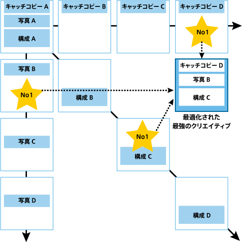効果の高い組み合わせだけを残していく最適化の手法。広告業というと、「派手」で「クリエイティブ」なイメージに思えるが、「売れる、インターネット広告」をプランニングする際は、いままでと違う観点が必要なようだ。