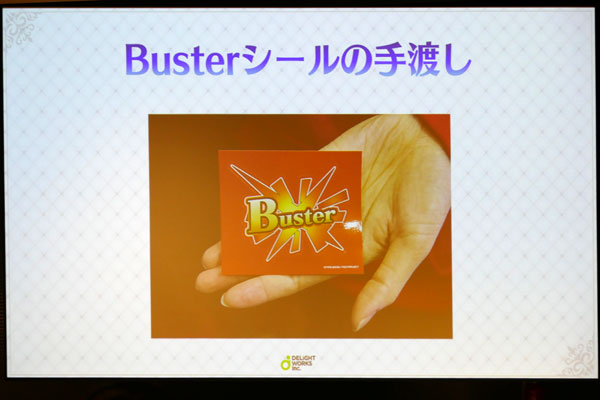 オリジナルの「Busterシール」も作成し、ユーザーに直接手渡しして配っている。その配布枚数はすでに4,000枚に達しているとのこと。イベント後には、Twitterでも「バスターさんからシールもらった」という投稿が多く見られるようになったそうだ。