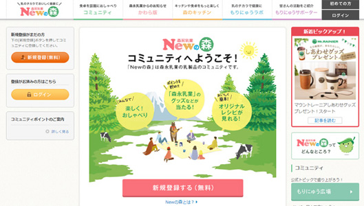 コミュニティサイト「Newの森」では、交流を通して顧客のエモーションを創出することに挑戦している。同サイトでは、クイズなどの参加型コンテンツの他、腸内フローラの働きについての理解を促進する全12話のコンテンツを配信。通常の広告ではスキップされてしまう内容も、1話ずつ公開することでユーザーの「楽しみ」という感情を刺激することにつながる。