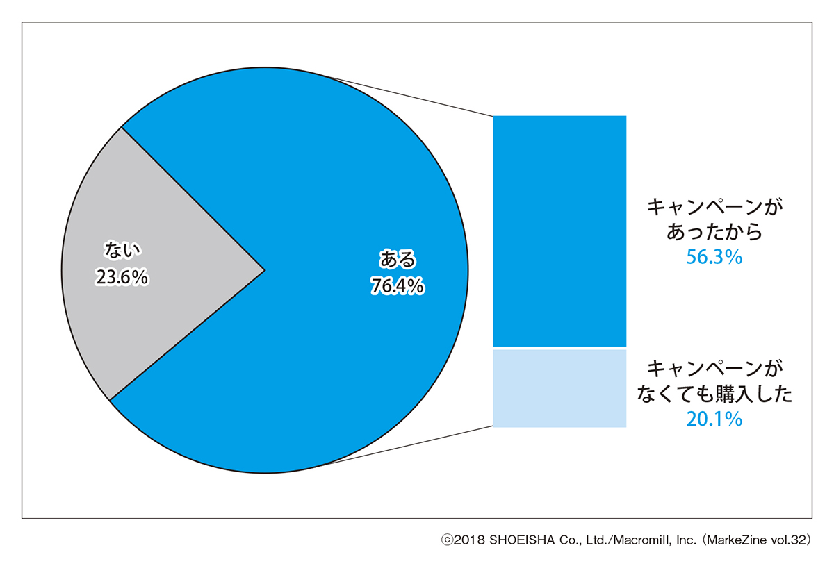 その76%のうち、キャンペーンがあったから商品を購入したという人は56%を占めた。送料無料キャンペーンという施策はその目的の一つであろう新規顧客の獲得に対して、ある程度の効果がありそうだ。