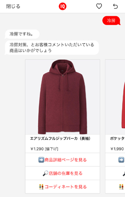 松山:先ほどの回答率の話にもつながるところですが、フリーワードに対する回答の仕方も工夫しています。「UNIQLO IQ」で「冷房」と入れてみてもらえますか。