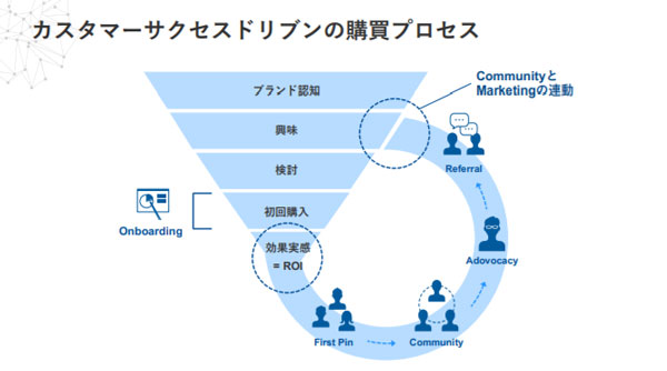 マーケティングの文脈だと、ここまで個人にフォーカスすることはないですよね。マーケティングの文脈では大きく何かを動かすことが重要です。一方で、カスタマーサクセスは「現場」なんですよね。現場の喜びの声をいかに引き出せるかが重要。喜びの声を集積できれば、先のサブスクリプションモデルにおける購買プロセスの好循環が生まれます。なので、コミュニティマーケティングには大きな可能性を感じていますね。