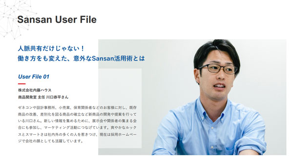 小川:「Sansan User File」という、お客様がSansanを使って何が変わったのかを紹介するコンテンツも同時並行で作成しています。一般的な成功事例とは少し毛色が違っていて、事業の成功というより担当者やチームメンバーにフォーカスした内容にしています。