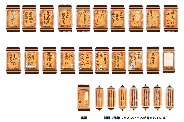 松長:引き続きエビ中とコラボし、2017年の6月に実施したのが、メッセージサブレです。内袋に全19種類のメッセージが書いてあるもので、よくお菓子にメッセージを添えてコミュニケーションを取るケースがあると思いますが、それを手軽にしようと取り組みました。