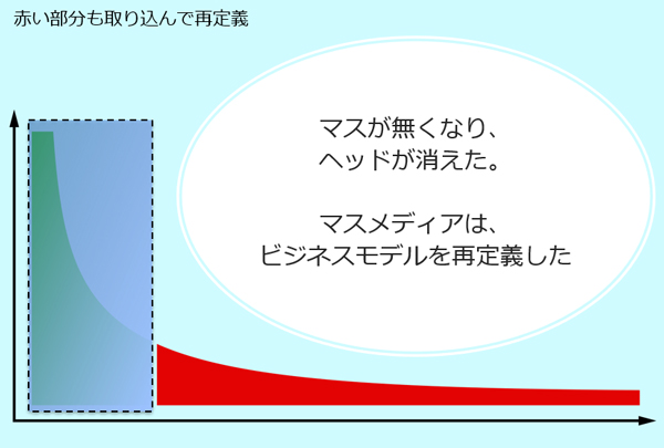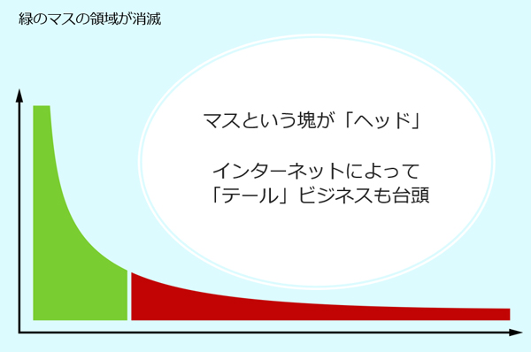 クリス・アンダーソンがその著書『ロングテール』(早川書房 2006)で論じたように、インターネットの普及によって、マスメディアが得意とした「ヘッド」を対象としたビジネスだけでなく、「テール」を対象としたビジネスも台頭するようになった。