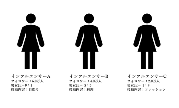 まず、以下のようなインフルエンサーが3名いたとします。