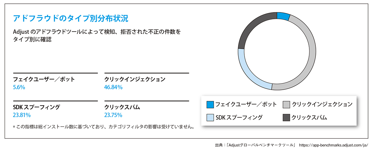 我々のツールは計測しレポーティングするだけでなく、リアルタイムでそのアドフラウドの発生を検出し、除外するのが特徴です。同時期の全有料インストール数の7.3%を我々のツールで拒否したものの、それはあくまで当社のツールを導入している企業の広告に発生したフラウドにとどまります。当社では世界の全トラフィックのうち10〜20%がフラウドだと推測していますが、仮に2018年のモバイル広告費が1兆円だとすると、10%ならば1,000億円の広告費が不正業者に流れていることになります※1。これは、決して看過できない数字です。
