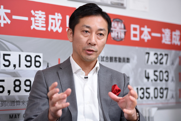 私は「1万人ぐらいのアリーナは、箱として小さい」と考えています。Jリーグやプロ野球などはより多くの人を熱狂させている。バスケットにもそれだけの力があるので、常に1万人近い熱狂の渦を作るのはもちろん、その先を当然目指していくべきです。